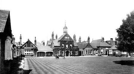 1878 The Rous Memorial Fund was launched with the aim of building a hospital on land conveyed by Sir Richard Wallace. The Trust laid down its primary purpose - the care of those employed in the racing industry, but did not rule out the occasional treatment of others. The architect Frederick William Roper designed the bulding in the Queen Anne revival style, with a central clock tower, The Almshouses in the grounds, were single storey cottages, also intended for people connected with racing. They catered for two married couples and six single persons